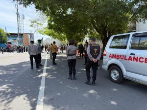 Kilastimur.com – Maros (Sulsel) – Dalam rangka memastikan keamanan dan keselamatan seluruh pihak pada aksi unjuk rasa yang digelar aliansi buruh dan mahasiswa, Polres Maros menurunkan tim kedokteran kepolisian untuk bersiaga di lapangan.