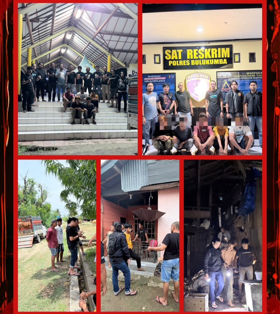 Kilastimur.com – BULUKUMBA — Tim gabungan dari Resmob Satreskrim dan Kamneg Satintelkam Polres Bulukumba bersama Unit Reskrim Polsek Bulukumpa berhasil mengungkap kasus pencurian ternak (curnak) yang terjadi di wilayah hukum Polsek Bulukumpa. Sebanyak lima terduga pelaku berhasil diamankan, tiga di antaranya ditangkap di wilayah Kecamatan Cina, Kabupaten Bone.
