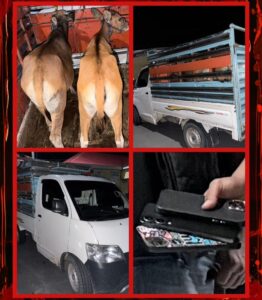 Selain mengamankan kelima terduga pelaku, petugas juga berhasil mengamankan barang bukti berupa Dua ekor sapi milik korban dalam keadaan hidup, satu unit mobil pickup yang digunakan untuk mengangkut sapi hasil curian serta 3 unit handphone.
