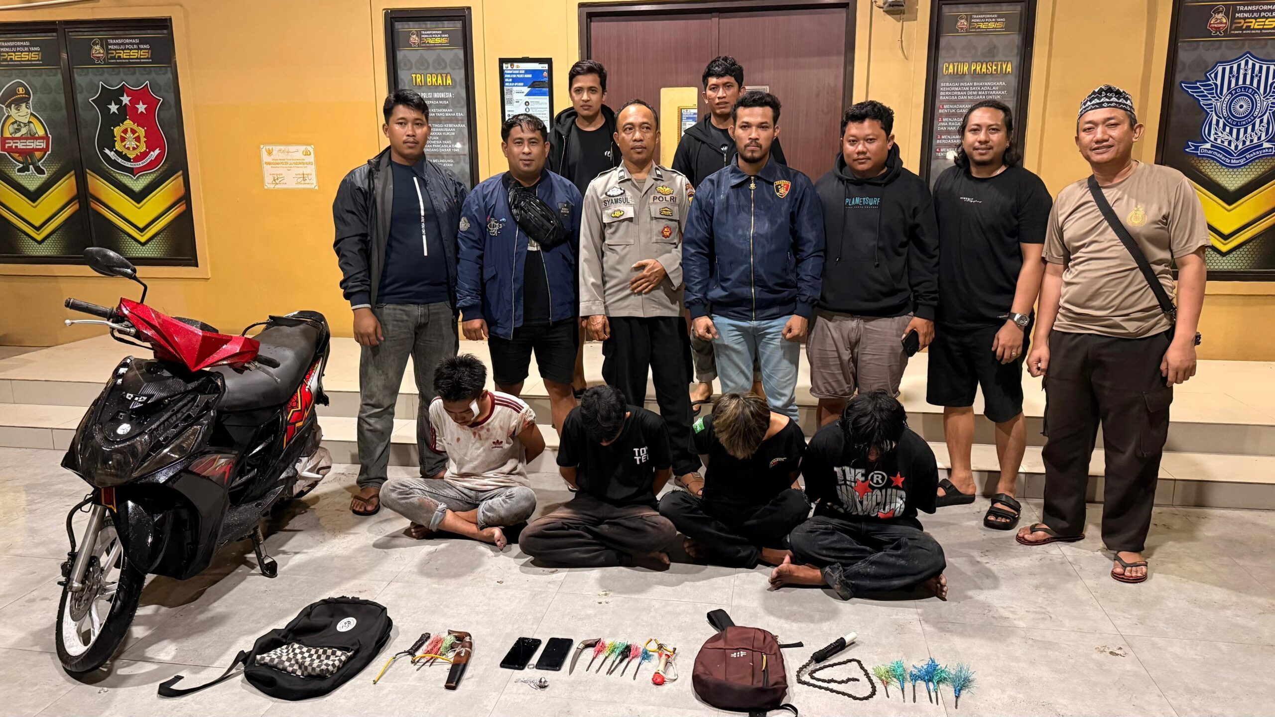 Keempat remaja tersebut masing-masing berinisial AR (16), AS (14), KB (19), dan AM (18). Mereka diamankan saat sedang berkumpul di sekitar lokasi oleh personel gabungan Unit Jatanras Satreskrim Polres Maros dan Polsek Lau yang tengah melaksanakan patroli rutin.